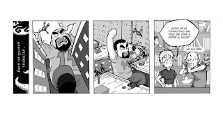 Interesante la idea de parodiar a un personaje recurrente del mundo friki como el vendedor de comics, en una obra hecha a base de experiencias reales.